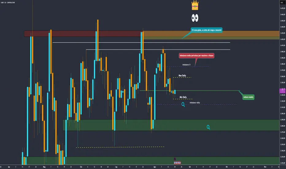 📌 Conclusione: Agosto rimane un mese di attesa. Oro in range con movimenti guidati da news geopolitiche e dalle parole della Fed. Mi aspetto acquisti sui ribassi e vendite sui massimi fino a che non avremo chiarezza su tagli e scenari di pace.