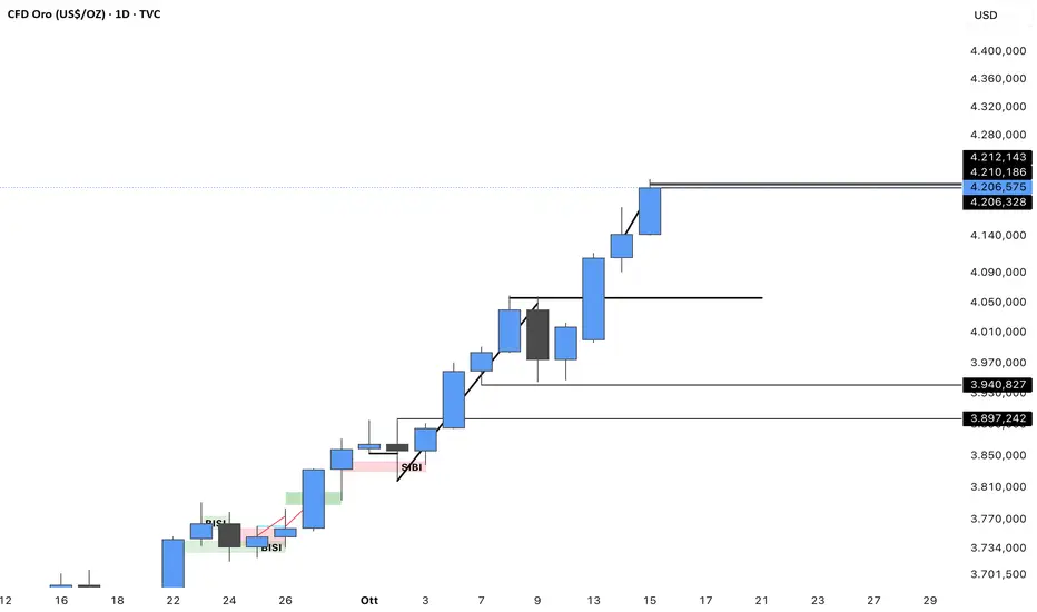 Si nota che il prezzo dell’oro, anche dopo aver superato la zona dei 4.000, non smette di salire 📈.