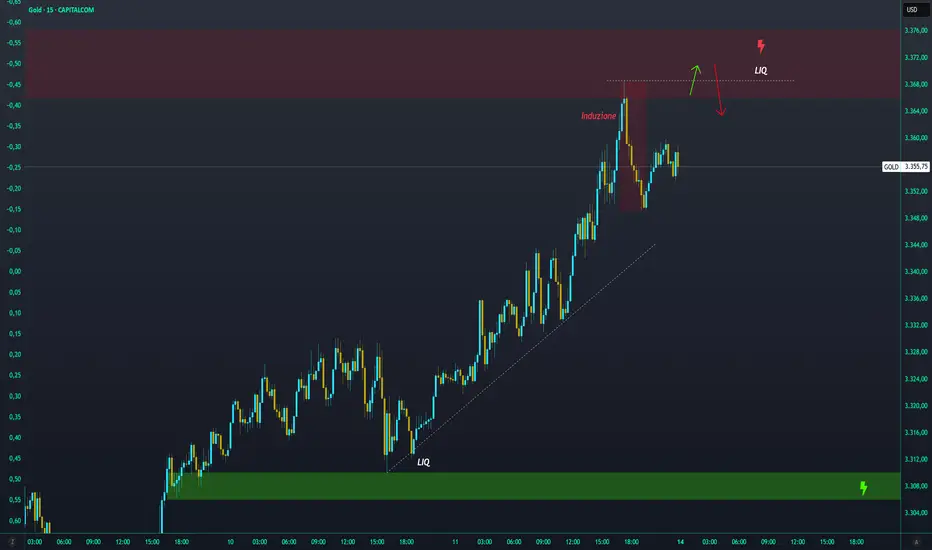La cosa che vorrei è prima la ricerca a rialzo e poi un rientro forte nella zona a ribasso, così da poter poi valutare short sempre nella zona rossa.