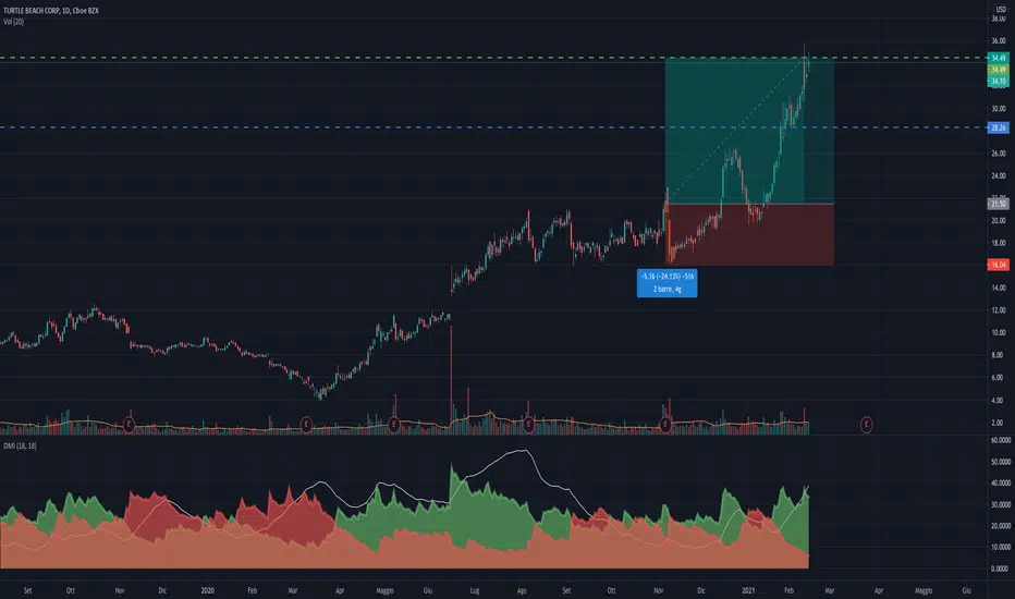 Turtle Beach Corp take profit raggiunto. +60% nel giro di un mese e prospettive long lato fondamentali.