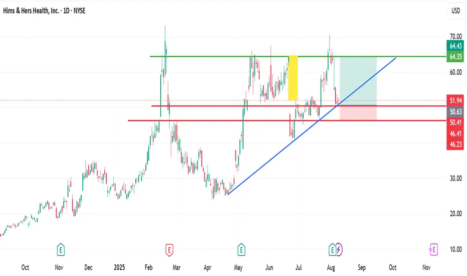 My mid to long-term view for Hims & Hers is bullish and shown on my chart
