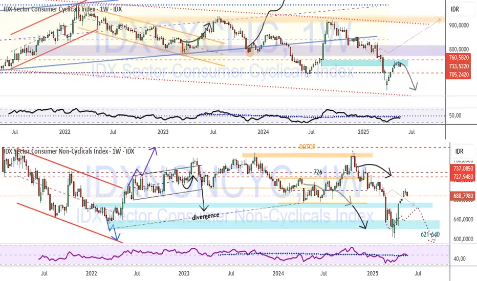 IDXNONCYC sudah terbentuk HH sekarang akan mulai membentuk HL di area kotak biru