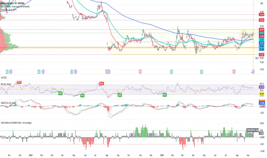 If positive momentum resumes, Intel would need to break strongly above the resistance at the upper end of its current range and test $30, a former support area with significant volume concentration. Conversely, if momentum fades, the current price consolidation could lose ground toward the indicated POC level. Meanwhile, ActivTrades US Market Pulse remains in neutral territory.