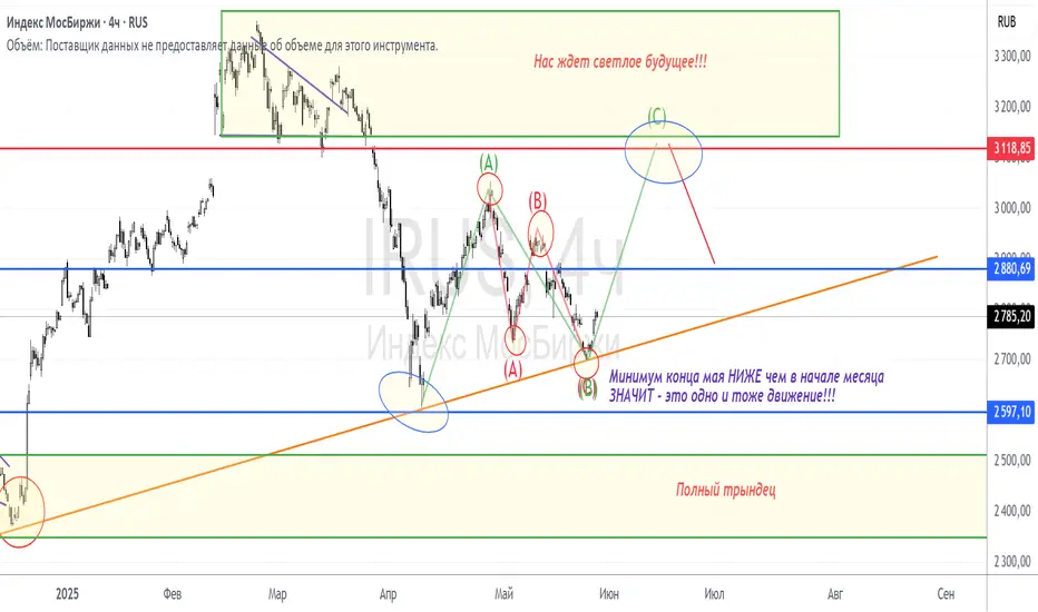 Чтобы надежды стали более менее реальными (пока мы играем всего лишь отскок. и может быть заливка аж жуть, но тогда она пройдет на Газпроме с его сливом к 115 а то и ниже... другие лишь позади него будут) - надо пройти зону 2840 - сделать тест ее сверху и закрепиться выше... )))