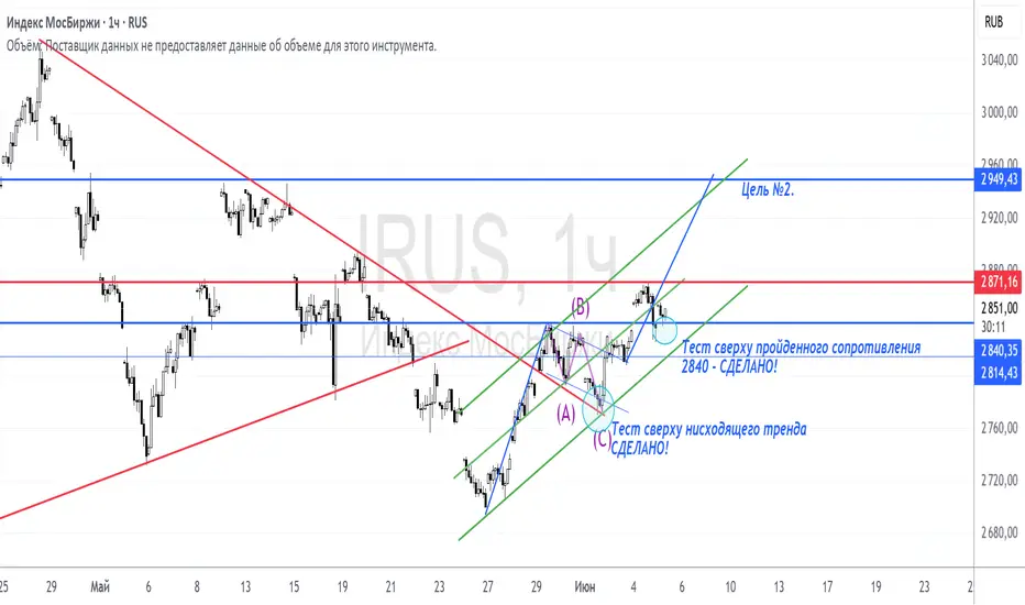 Сопротивление 2840 - пройдено. Сверху протестировано. оттолкнулись и пошли вверх.