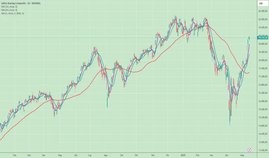 - NASDAQ: –0,18% → 19.112,32 (–34 punti, fine della serie positiva di 6 giorni)