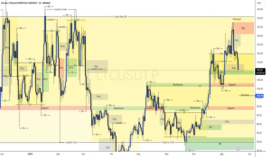 LTC’de beklediğim gibi yeşil taralı alana kadar geri çekilme gerçekleşti. Altında kaldığımız sürece negatif takibimi sürdürüyorum. Buradan gelecek tepkiler kritik; yetersiz kalmaları halinde kırmızı taralı alan ve discount bölge hedef olmaya devam edecek.