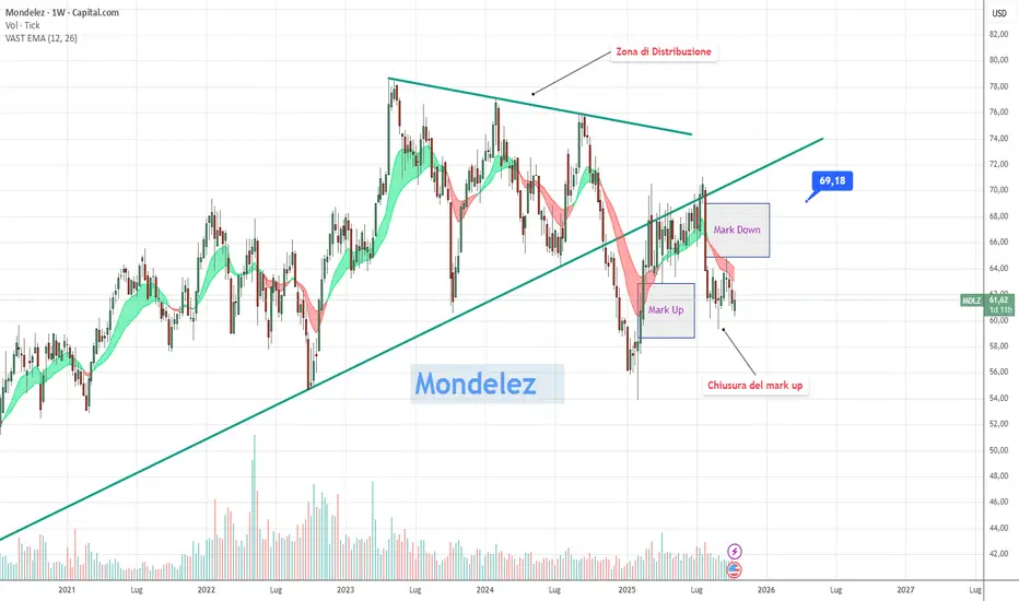 Mondelez è un'azienda che sta vivendo una fase terribile in borsa. Nonostante il solido business alle spalle che continua a generare un buon flusso di cassa, si intravedono cambiamenti nei consumi di massa soprattutto nei confronti del junk food. Altri titoli simili stanno soffrendo come Pepsi.