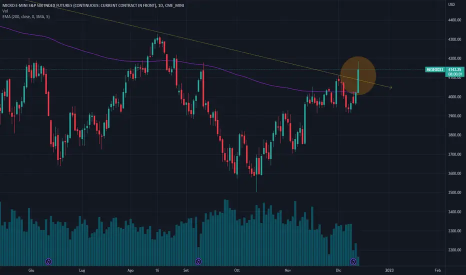 A seguito del rilascio del dato ICP inferiore alle attese, l'S&P500 tenta uno scatto rialzista superiore al 2,5% (nel momento in cui scrivo) con un movimento di violazione sia della trendline ribassista che della media mobile a 200 periodi.