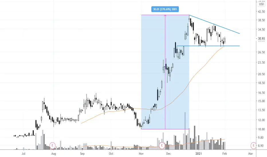 One of the stocks on my focus list is M P Materials. It been consolidating its massive 275+% gain for the last couple of months in a constructive pattern. Stocks puts in big size daily moves so size your positions accordingly.