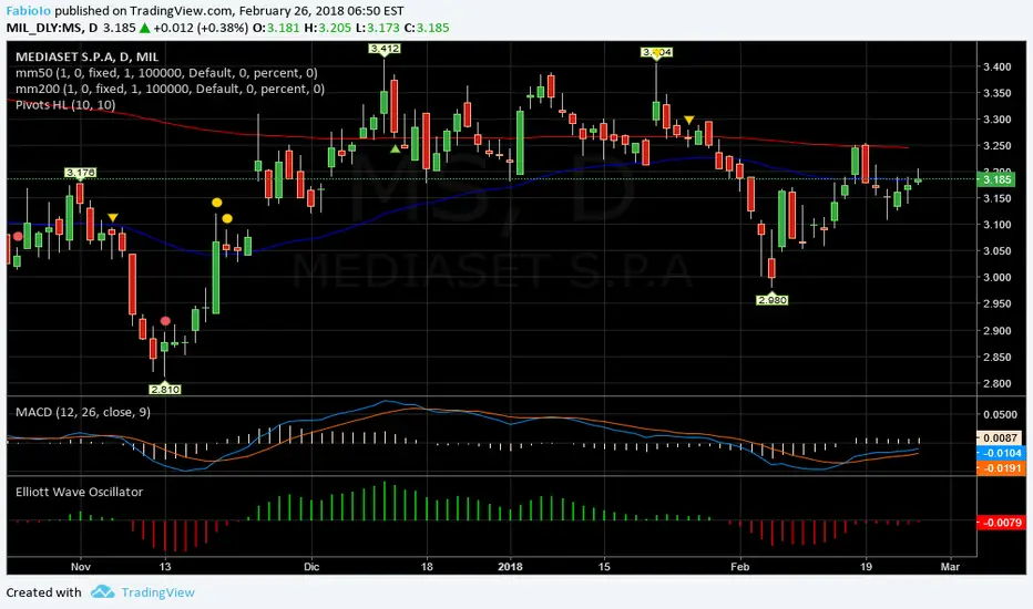 Forza1 = - + (LONG da 2,902) del 6/10/2017 ad oggi 9,34%/Forza2 = - -/Last Cycle LONG 21-2-2018 da 3,15 Giorni 3 L/Ad oggi = GAIN 0,73% / Hma - / last price 3,17/ 0,41%/ CyOk : incerto + /Hma - 23/2 3,17 0% giorni 0 / Ciclo2 pos. 14-2-2018=3,141(1,02%)// DMI DOWN