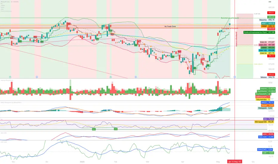 📉 Se si verifica una discesa verso 444–446 (VWAP) dopo il dividendo, può costituire un ottimo punto di rientro.