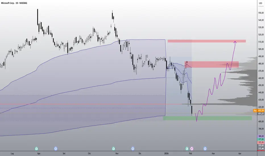 Già nella live di ieri ho iniziato uno scale in su Microsoft, che a questi livelli considero a sconto, sia dal punto di vista volumetrico (come visibile dal grafico) sia da quello fondamentale.