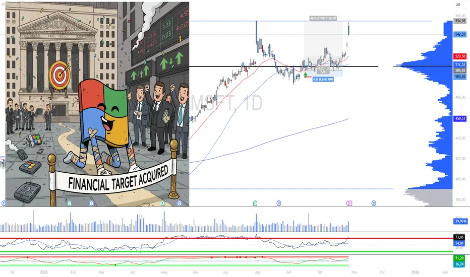 Un saluto a tutti i trader, finalmente, dopo settimane di lateralità, Microsoft ha raggiunto il nostro target prestabilito, colmando un'inefficienza di prezzo significativa. Il tempismo è perfetto, con l'annuncio degli utili atteso questa sera, che chiuderà l'operazione sul target che avevamo fissato da tempo.