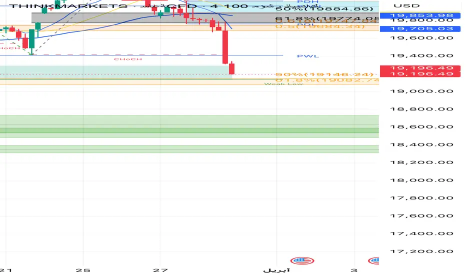 • الاتجاه العام على الفريم الأسبوعي تحول إلى هابط مؤسسي بعد كسر واضح لمستوى CHoCH أسفل 19,753.