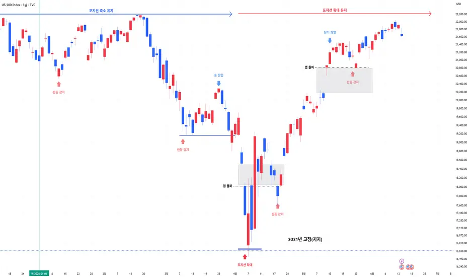 * 지난 4월 급락 구간에서 2021년 고점을 지지 받으며 포지션 확대 시그널이 발생