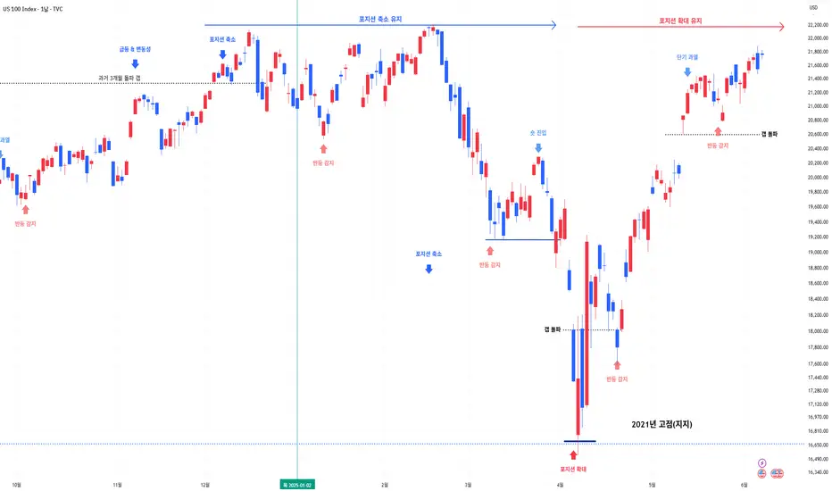 * 지난 4월 급락 구간에서 2021년 고점을 지지 받으며 포지션 확대 시그널이 발생하였다.