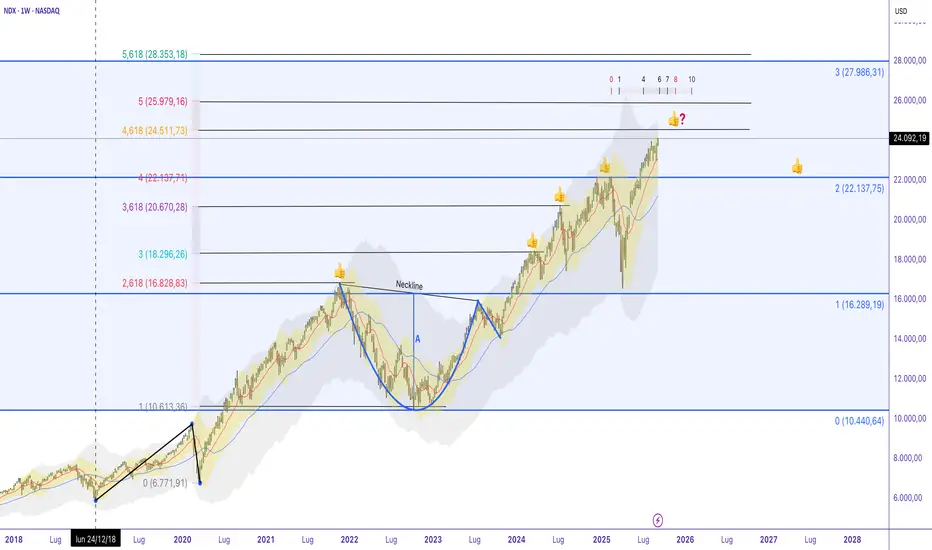 Da evidenziare, è la sequenza precisa dei livelli dell'estensione di Fibonacci, e non di meno, la forte respinta attesa e data dal livello 2 della tazza.