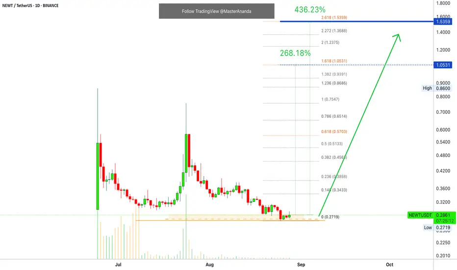Here we have Newton Protocol, NEWTUSDT. The low is still not confirmed, it can be early again. There is no volume and these things are tricky.