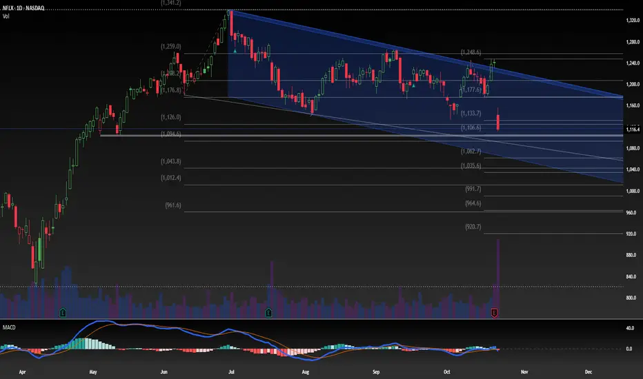 The pre-earnings rally to $1,238 was a classic Wyckoff bull trap, an Upthrust After Distribution (UTAD). The earnings miss was the catalyst, and today's chart shows the devastating "effect" of the "cause" built during that distribution.