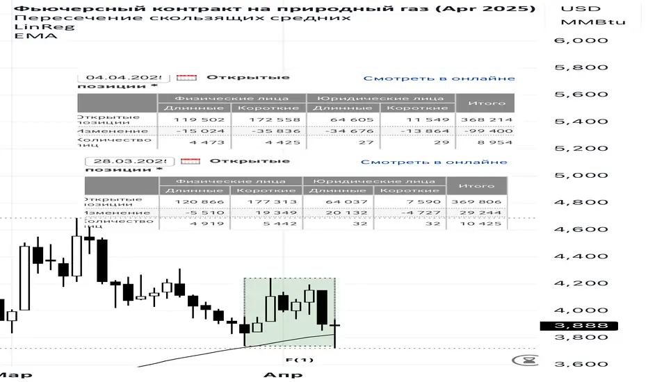 Обязательства российский трейдеров на 04.04 достигли нулевой суммы к обязательствам на начало апрельского контракта 28.03, констатируя этот факт, фаза старшего порядка F(1), состоявшая из двух фаз младшего порядка f1 и f2 продолжительностью 4 дня каждая, завершена и составила 8 дней. Целевой уровень месячной волатильности для апрельского контракта 4.804. МА60 подтверждает начало второй фазы распределения старшего порядка F.