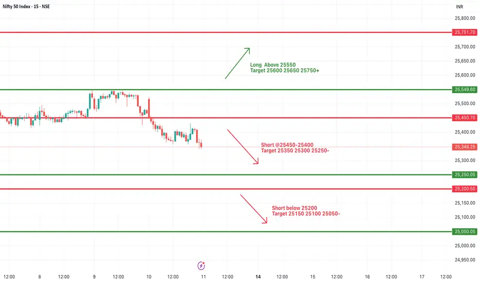 On the other hand, any sharp reversal and breakout above 25550 may revive bullish sentiment. Sustaining above this level can push the index toward 25600, 25650, and 25750+. However, upside movement will require strong buying interest and volume support.