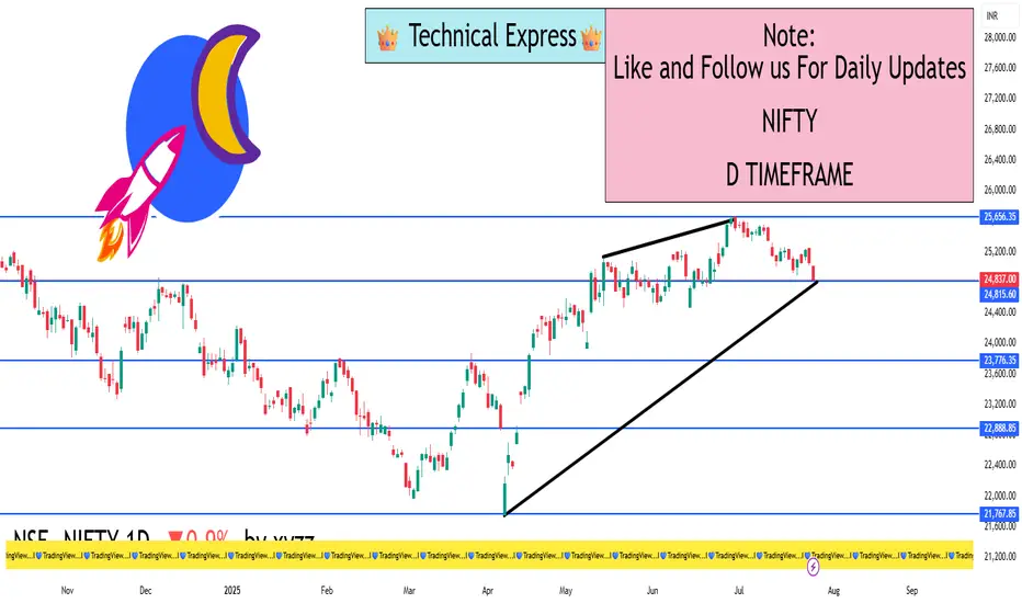 Primary Support: ₹24,800 – This level has been tested multiple times recently. A close below it could trigger further downside.