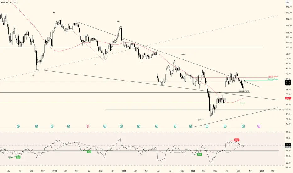 NKE you know I was eying a descending wyckoff accumulation schematic. We successfully anticipated the spring-phase and now I think there is a big chance the spring-test has been completed, or anyway will complete soon.