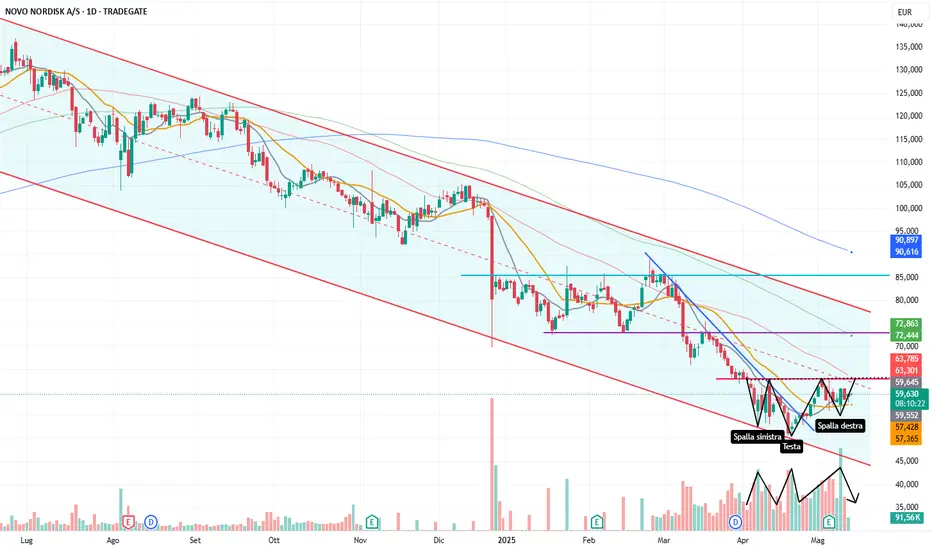 La neckline della figura è posizionata sui 63€ e una eventuale attivazione avrebbe come target i 72-73€