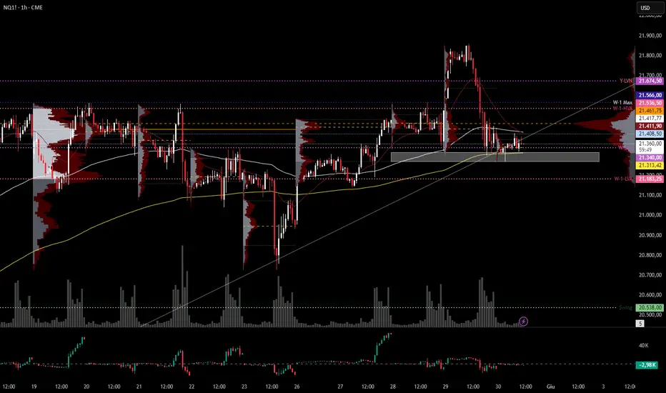 La prima resistenza è identificata nella HVA a 21536 che come scritto in precedenza è allineata con quella della scorsa settimana, ma nonostante cioè espanderei tale resistenza fino a 21556 considerando il tutto un'area. La seconda resistenza è identificata nel LVN annuale a 21674.