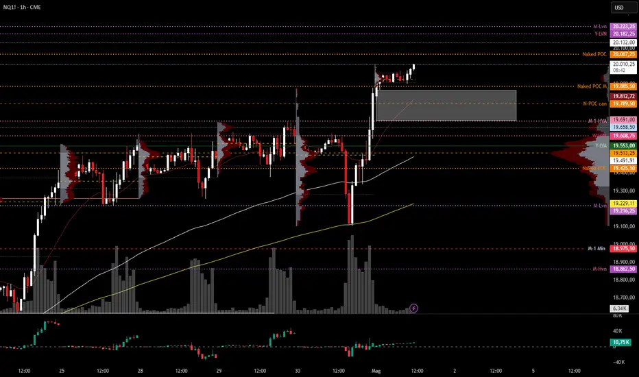 Nel caso i prezzi dovessero stornare qualcosina e rompere la LVA odierna e comunque i prezzi dei 19900 potremmo andare a ricoprire l'area di inbalance fino alla HVA del mese di Aprile. In alternativa per lo scenario long si potrebbe continuare a salire per ricoprire anche il POC a quota 20067.
