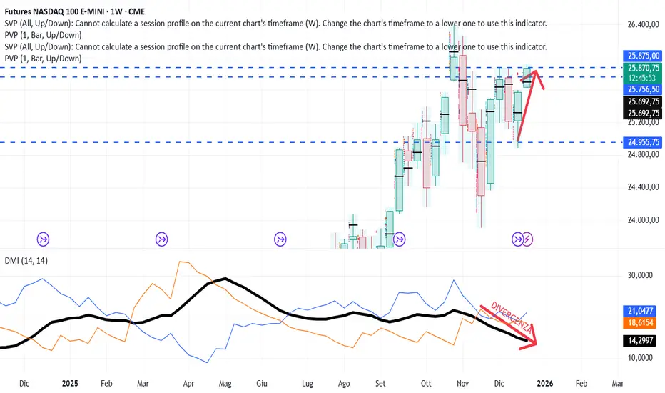 Anche su base settimanale ADX Line inclinata al ribasso indica assenza di trend