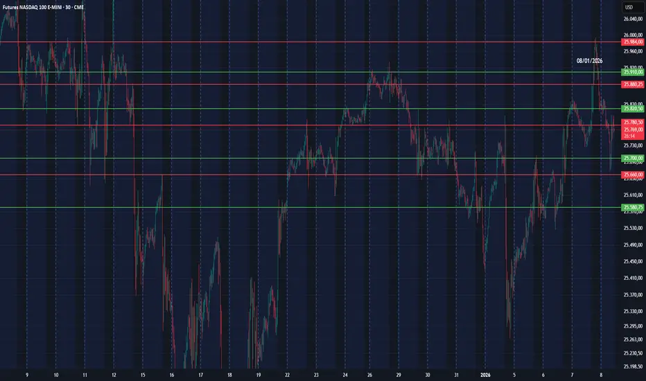Sul NASDAQ , individua una zona di resistenza in 25780 con target ribassista a 25580. Prevede un break out rialzista 25820 con estensione in 25880.