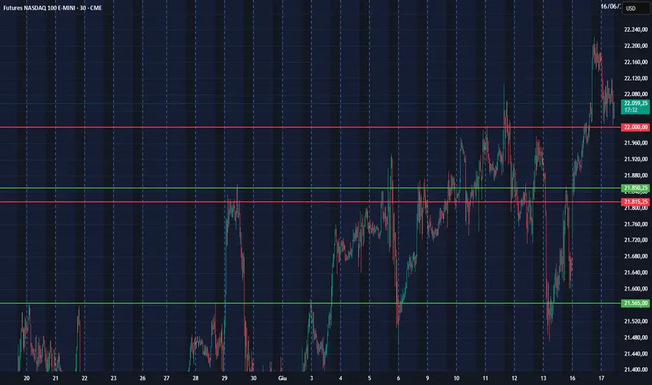 Il NASDAQ ha resistenza in area 22100. Qualora si dovesse superare l’area 21915 si dovrebbe impostare al rialzo. Supporti in area 21715 e qualora si dovesse scendere fino a 21650 si potrebbe impostare un ribasso.
