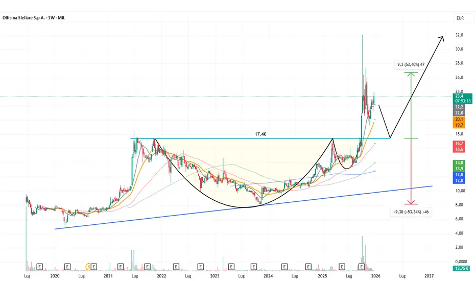 E' ancora possibile un retest del supporto dei 17,4€ prima di un nuovo ATH