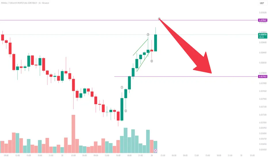 PENGU/USDT is in a prime short setup following a completed five-wave impulse.