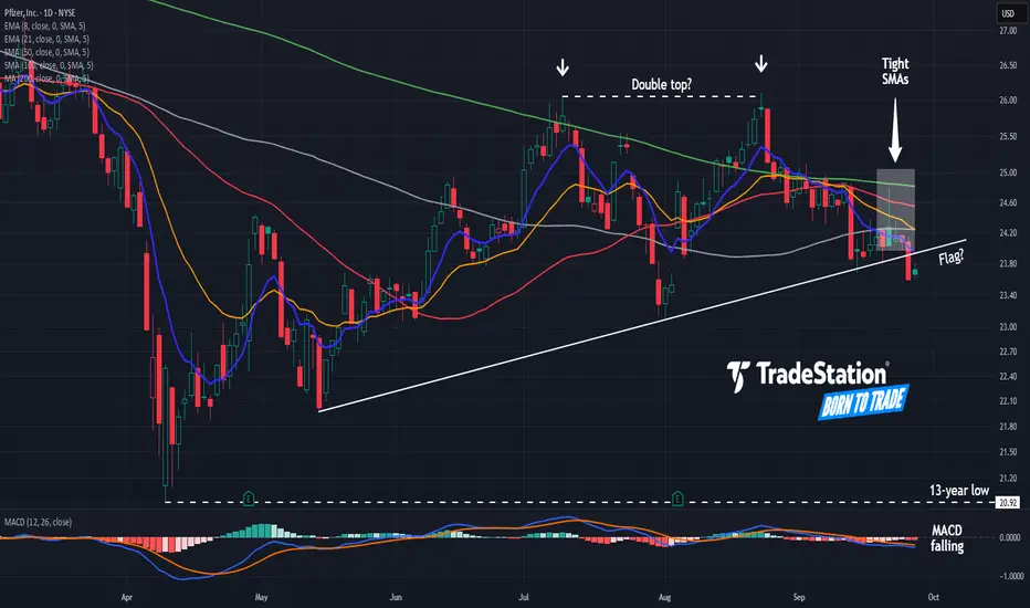 Pfizer has spent almost two years consolidating after a major slide. Now some traders may see the long-term downtrend reasserting itself.