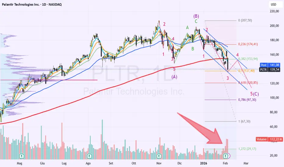 Particolarmente rilevante l’incremento dei volumi durante la fase di discesa, elemento che rafforza la validità del movimento ribassista e ne aumenta la probabilità di prosecuzione fino alla zona 120-125 USD.