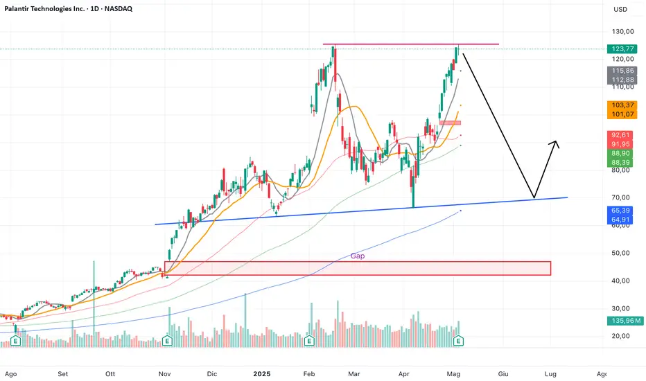 Ci sono tutti gli ingredienti per una importante discesa che potrebbe andare fino al supporto blu dove transita la sma200 (linea blu) in zona 70$