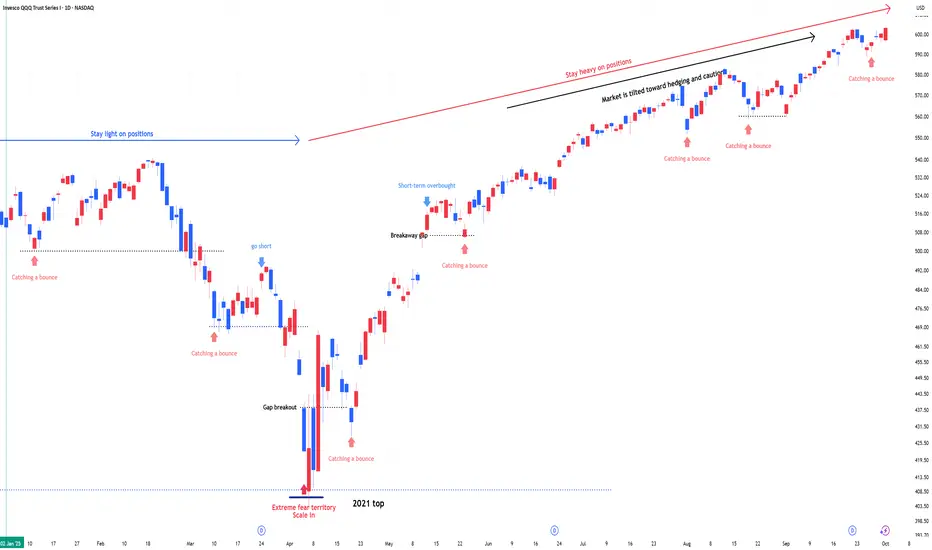 In stay heavy on positions zones, I increase allocation using a mix of QLD and TQQQ.