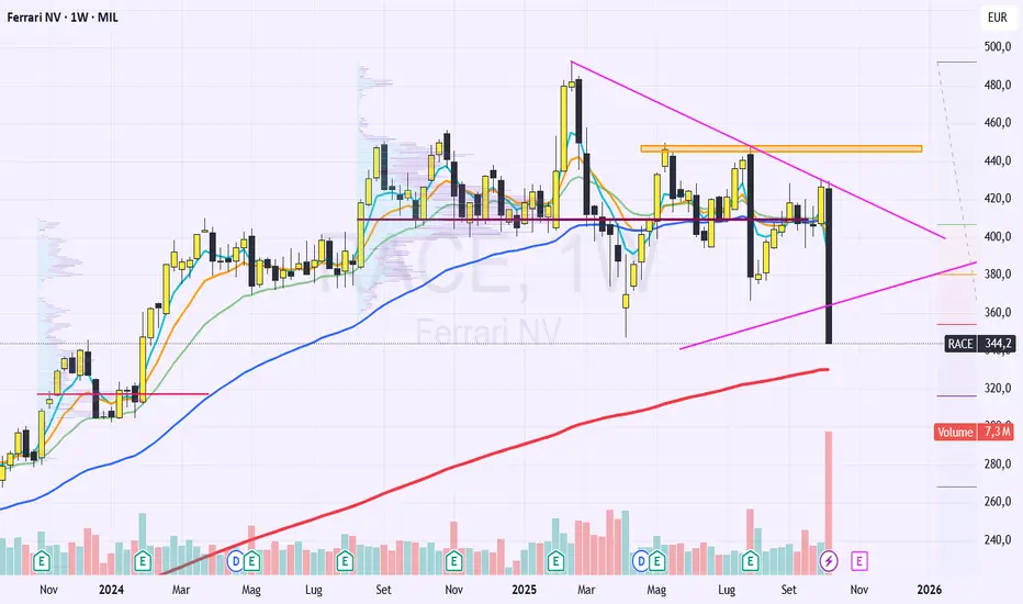 FERRARI non è nuova a correzioni rapide e improvvise in scia al rilascio di dati o news, come già osservato a febbraio e luglio. Il titolo rimane quindi fortemente volatile, con venditori pronti a uscire nei momenti di tensione.
