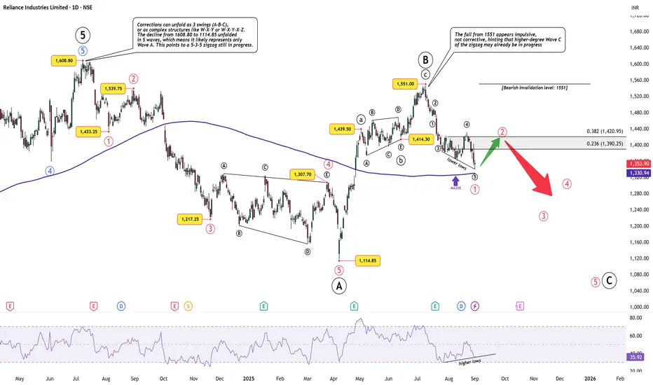 Reliance Industries – Short-Term Bounce, Bigger Zigzag Unfolding