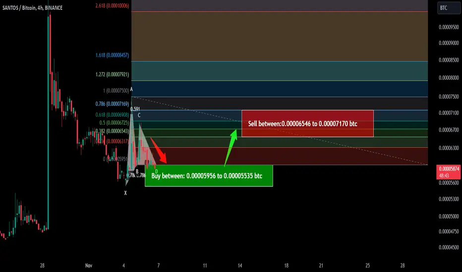 Now on a 4-hr time frame, SANTOS with Bitcoin pair has formed a bullish Gartley move for the next price reversal.