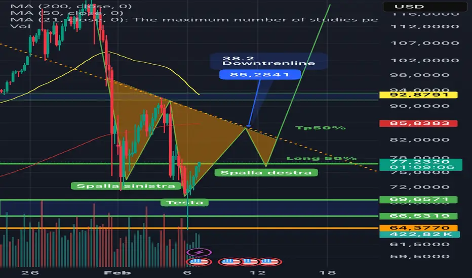 Aggiornamento sull’operazione: l’idea iniziale si è confermata e il pattern di testa‑spalle rialzista Po prendere forma, con la probabile costruzione della spalla destra in area 75–77.