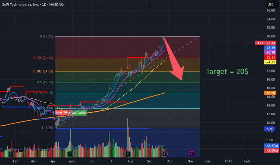 A pullback to 20$ is coming as this extended BULL rally ends.