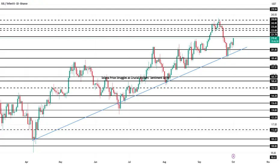 Solana is trading at $209, holding above the $206 support level and testing its uptrend line. The steady recovery underscores investor commitment to maintaining bullish momentum after brief interruptions caused by increased selling pressure from LTHs.