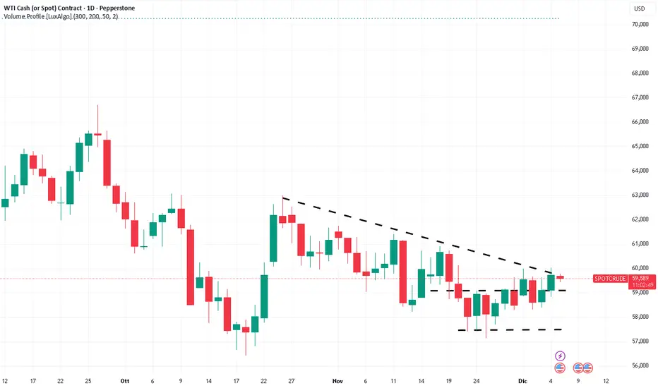 In tal caso, il mercato potrebbe tornare rapidamente a testare il supporto strategico poco sopra i 57 dollari.