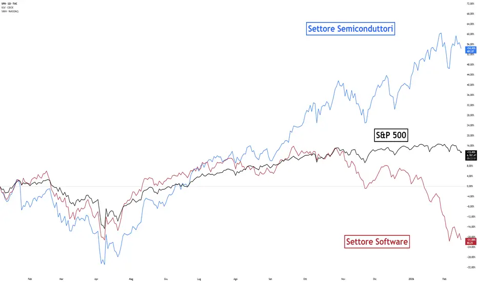 Annuncio di un'app o tool AI che migliora la produttività e l'efficienza ==> Sell-off immediato nel settore target ==> Rotazione del capitale verso asset difensivi e tecnologia "fisica".