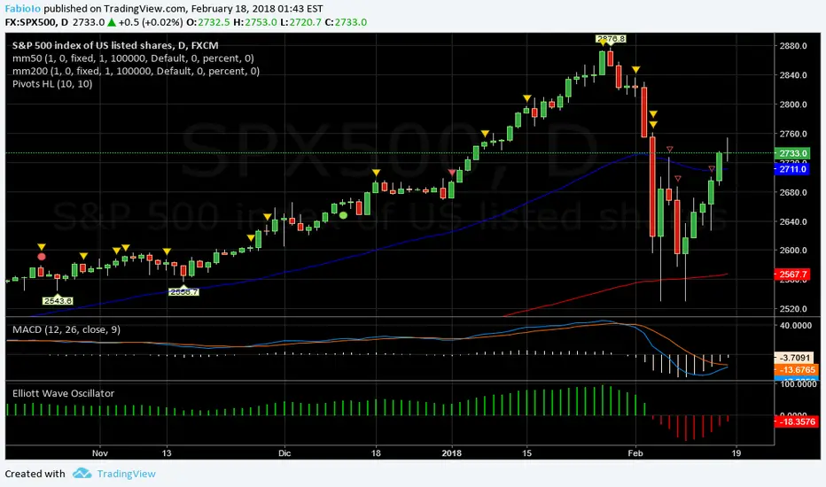 Forza1 = + + (LONG da 2163,66) del 10/10/2016 ad oggi 26,28%/Forza2 = + -/Last Cycle SHORT 31-1-2018 da 2823,81 Giorni 13 S/Ad oggi = GAIN 3,35% / Hma + / last price 2732,22/ 0,04%/ CyOk : negativo /Hma + 14/2 2698,63 1,24% gg. 2 / Ciclo2 neg. 25-1-2018=2839,25(-3,77%)/negativo in miglioramento/Short veloce / DMI DOWN /