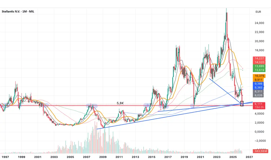 Il prezzo scende fino ad incontrare la zona di supporto “storica” dei 5,8-6€ indicata dalla linea rossa